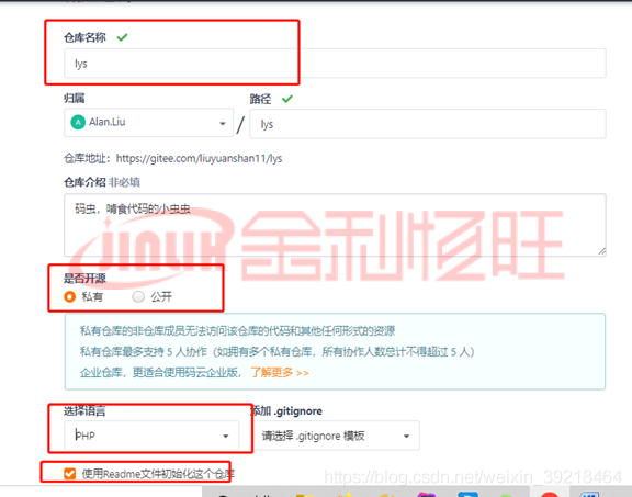 在碼云上創建一個項目倉庫