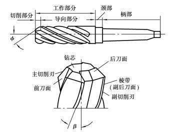擴(kuò)孔鉆如圖5.2.31所示,其直徑規(guī)格為φ10~φ80。與麻花鉆相比有如下特點: